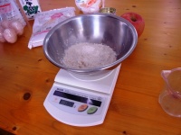 電子はかりがあると、ボウルを乗せたまま材料を足していけるからとっても楽チンです。