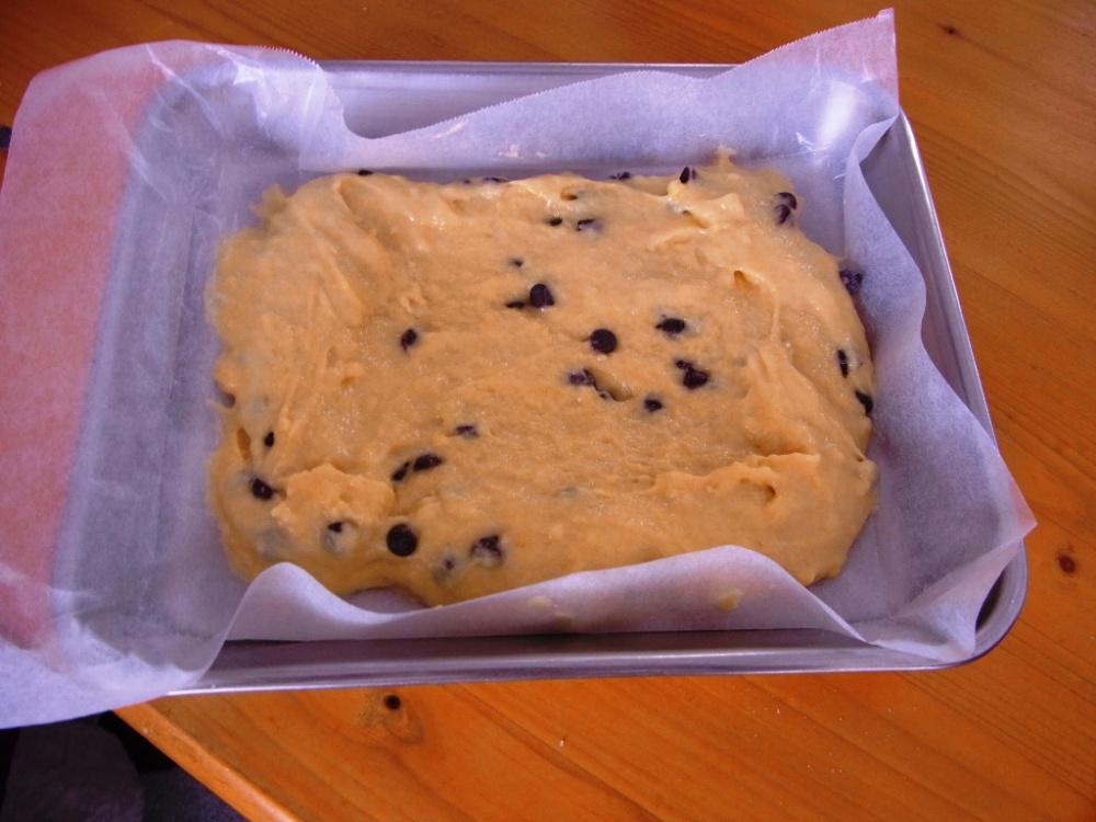 チョコチップケーキは、材料を混ぜて焼くだけ