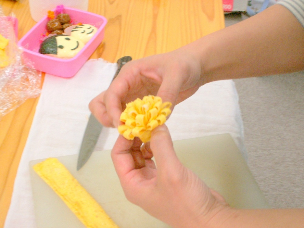 薄焼き卵もちょっとした工夫で、ボリューミーなお花に変身。