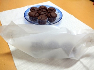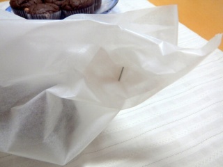 特に、焼き立てはまだ温かくて、ビニール袋などに入れてしまうと蒸気でべたべたになっちゃうから。クッキングシートでふわっと包んでホッチキスで上端を留めて、紙袋に入れて渡しています。