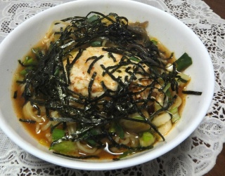 - ねぎときざみのりを散らす