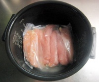 ささみは、ラップを使うと汁がもれて、お米に溶け込んで味がついてしまいました。