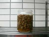 2.ひたひたより多めの水を入れ、ふたをして一週間発酵させる。