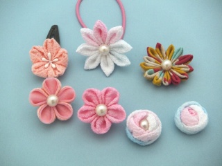 またつまみ細工という、布を四角に切って、のりとピンセットで形を作るアクセサリーも楽しんでいます。失敗したりする事もあるけれど、それも経験かな。