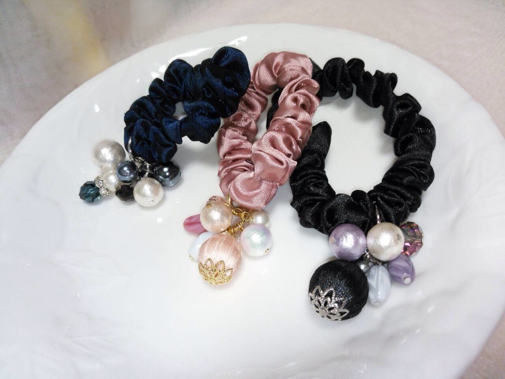 使わなくなったネックレスを解体して、リメイクして作り変える事もできます。ばらしてパーツをシュシュにつけてみたりもしました。