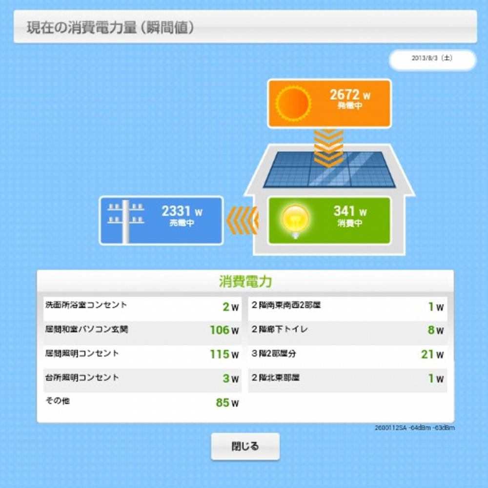 表示パネルを見ながら、「もうちょっとで、3kW発電する」とかつぶやいてみたり。