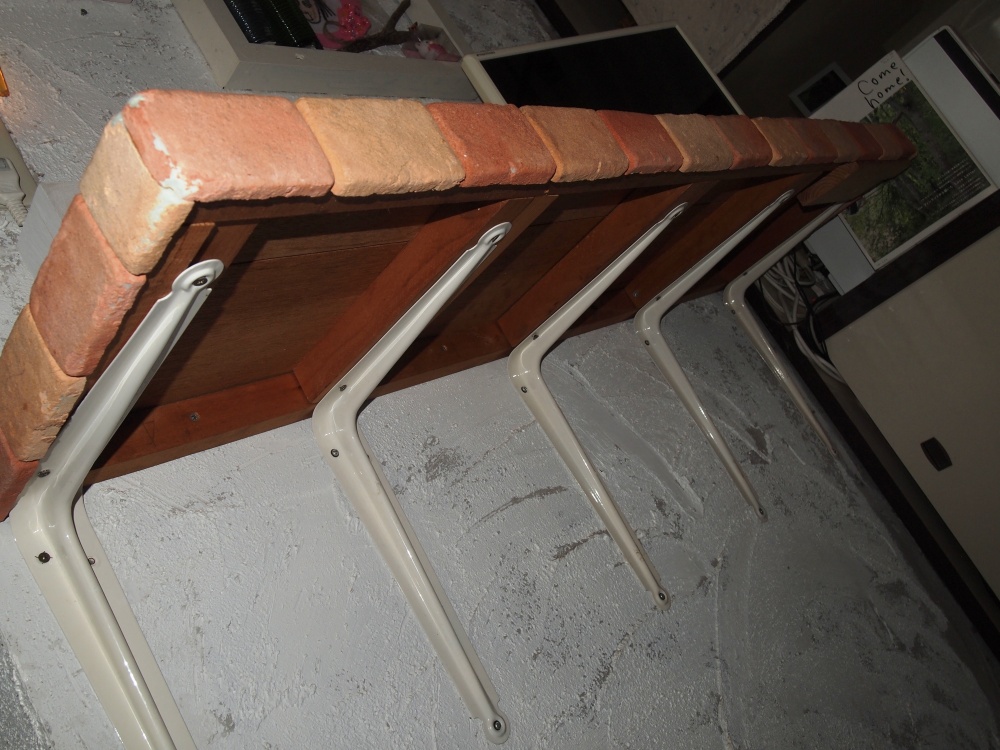 板の側面は、見た目がオシャレにするのと、角とがっていると危ないのでレンガ風の発泡スチロールを貼りつけました。
