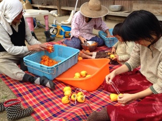 女性は毎月、お寺でお茶会があるの。みんなでおやつを持ち寄ります。おばあちゃん、お嫁さんなどいろんな人が集まりお話しを楽しみます。情報交換をする場になっているんですよ。これからこどもが通うこども園の様子を知ることができたり、病院の情報交換をしたりなど情報を得ることができますね。お友達ができることもあるの。