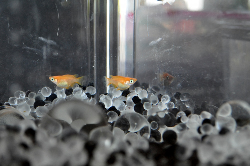 最初は、小さい発泡スチロール容器を水槽にしてね。