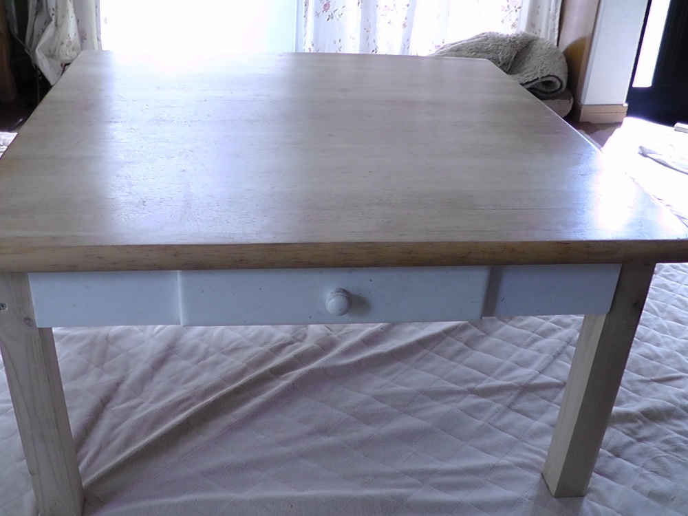 新居の居間に座卓として使う為に、足部分を外して短い角材と交換しました。