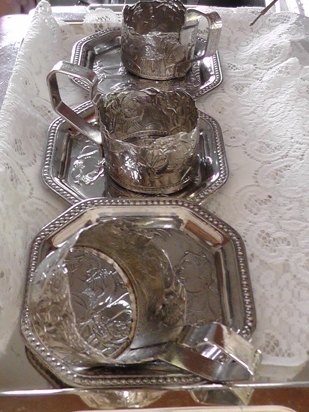 細やかな手入れ方法を身につけるために、バザー品の金属製食器を使用して練習中。