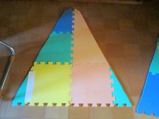 - (1)ウレタンマットをいくつかつなげます。不要になったものでもOK。