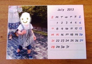 L判の写真用紙を使って、翌月のカレンダーを作る。