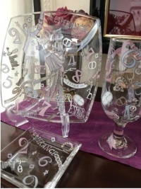 白い磁器やガラスに好みの色や柄の転写紙を貼ったり、絵の具で描いたりした後に焼き付けを行い、
