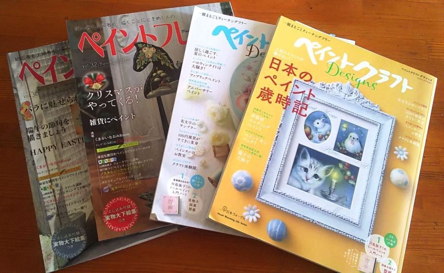 その後は、出版社さんからお声がかかりトールペイントの専門誌「ペイントクラフトデザインズ」「ペイントフレンド」に掲載する作品を提供するようになりました。