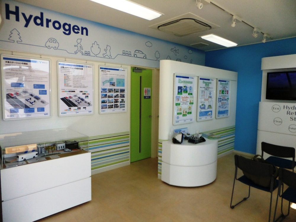 展示室と水素充てん機のスタンド、