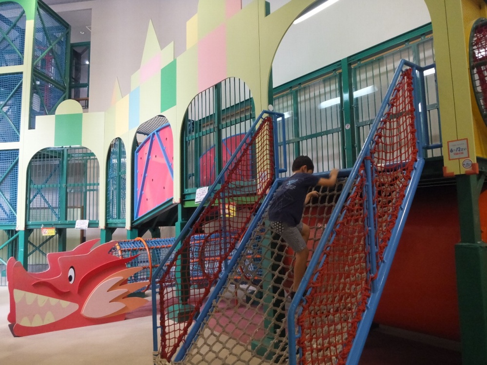 屋内施設では、こどもが体を思いっきり動かせる遊具もあり、