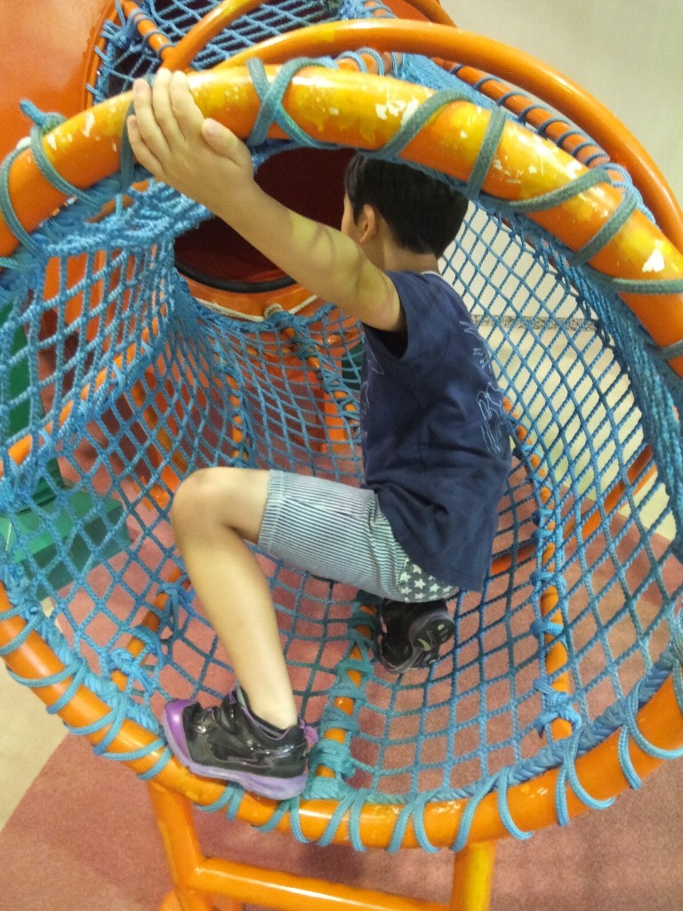 全身をつかって網を登ったり、少しうねった滑り台を滑ったり。
