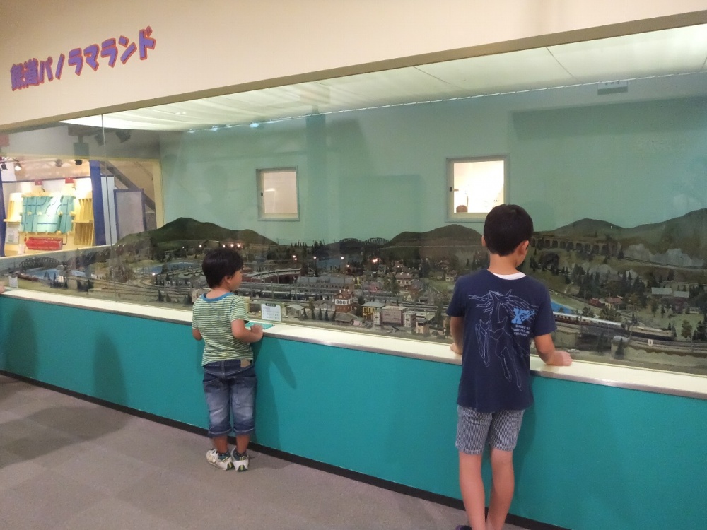 本物そっくりなミニチュアの街並みや鉄橋に電車がそう快に走り抜けます。