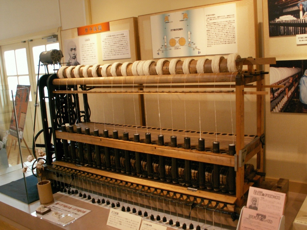 それまで手で紡いでいた糸が「ガラ紡」によってぐんと効率化されると、日本最大のガラ紡の産地に。