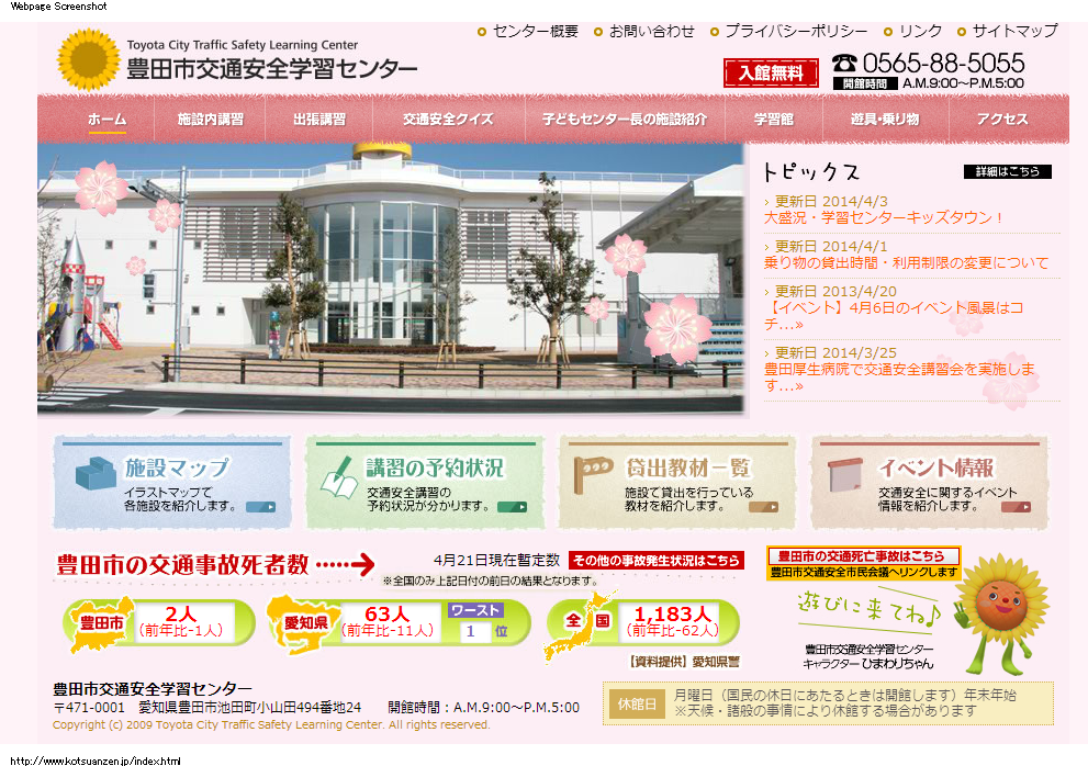 - 平成27年4月にリニューアルオープン 豊田市池田町にある「豊田市交通安全学習センター」が、平成27年4月1日リニューアルオープンしました。 開館されて5年経ち、様々な機器が新しくなり、親子で交通安全につい...