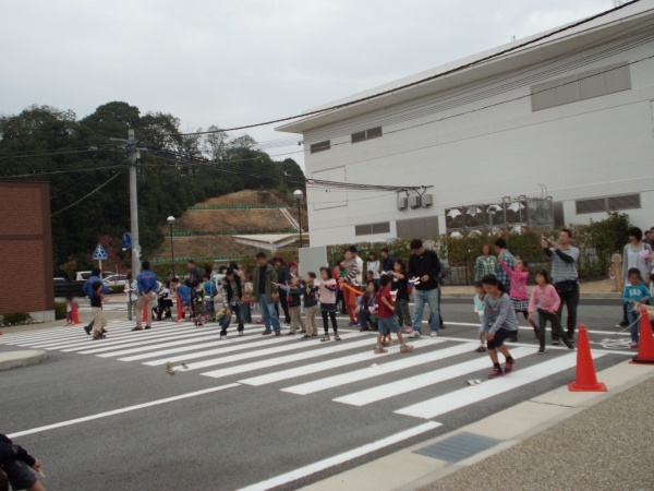 横断歩道を渡る体験学習中でした。