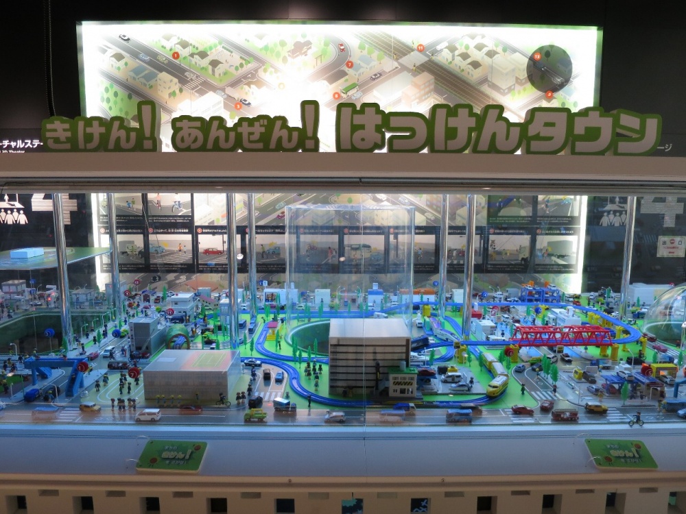 学習館2階にあがると、ミニカーで再現した豊田のまちを意識したミニタウンがありました。