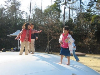 プレイハウスの南側には屋外遊具「ふわふわ」。