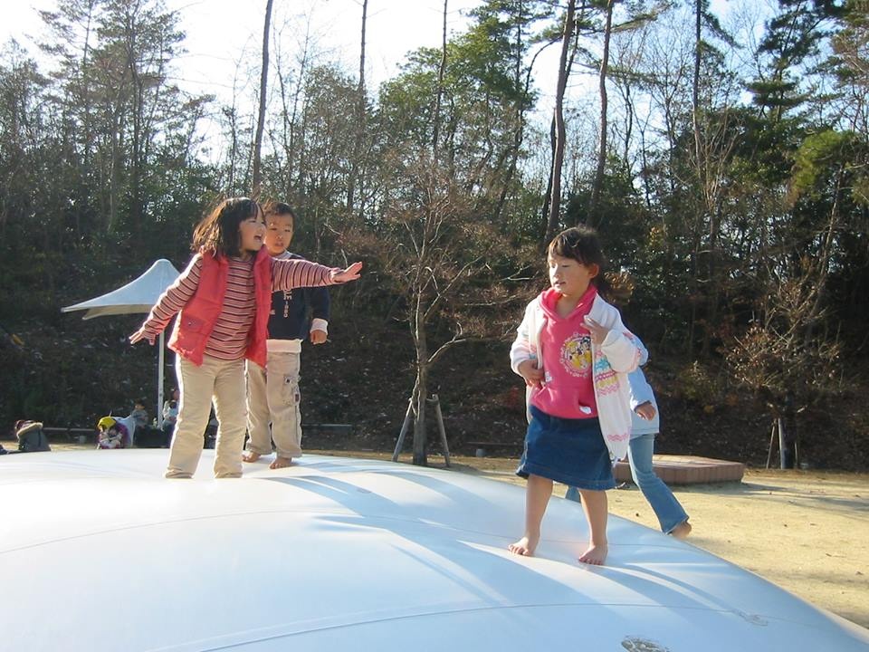 上にのってジャンプする、というシンプルな遊具なのですが、こどもたちはみんな本当にいい笑顔になります。