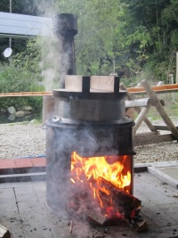 かまどで炊飯