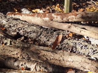 分解者のきのこが木を食べて、枯れた木が土にかえり、虫や微生物がよろこび、よい土が木の栄養になるんだそうです。まわりに他のきのこの仲間がにょきにょきと生えていました。