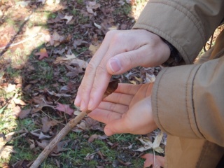 散策を続けて行くと、けんけんPさんから「ほら、暖かくないですか?」と言われて、冬芽を手でおおってみました。生きている冬芽からほわんと暖かみを感じることができたんですよ。