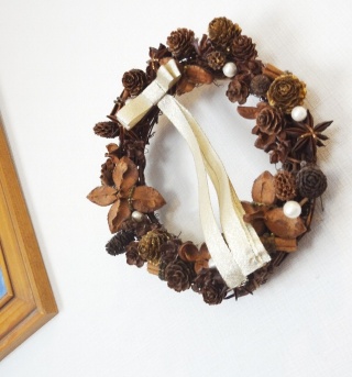 - リースを木の実でアレンジ