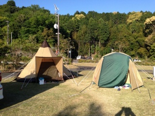 電源が自分のサイト内にあり、場所によってはレンタルテントがあるんです。立てるお手伝いもおそらく頼めると思います。ただトイレだけは少し遠いんですが。値段は高いけど、管理人がいてセキュリティが比較的しっかりしているので安心安全です。