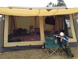 キャンプ道具は、インターネットで情報を集めてインターネットで購入しました。最初に購入したのは、ツールームテント。リビングと寝室に分けて使いました。