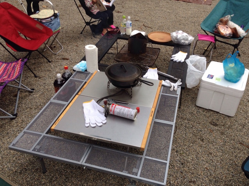 購入して良かったものは、「いろりテーブル」です。鍋などを囲んで食べることが出来ます。それから「焚火台」は直火禁止のキャンプ場で大活躍してます。キャンプ必需品を入れてあるコンテナも持っています。