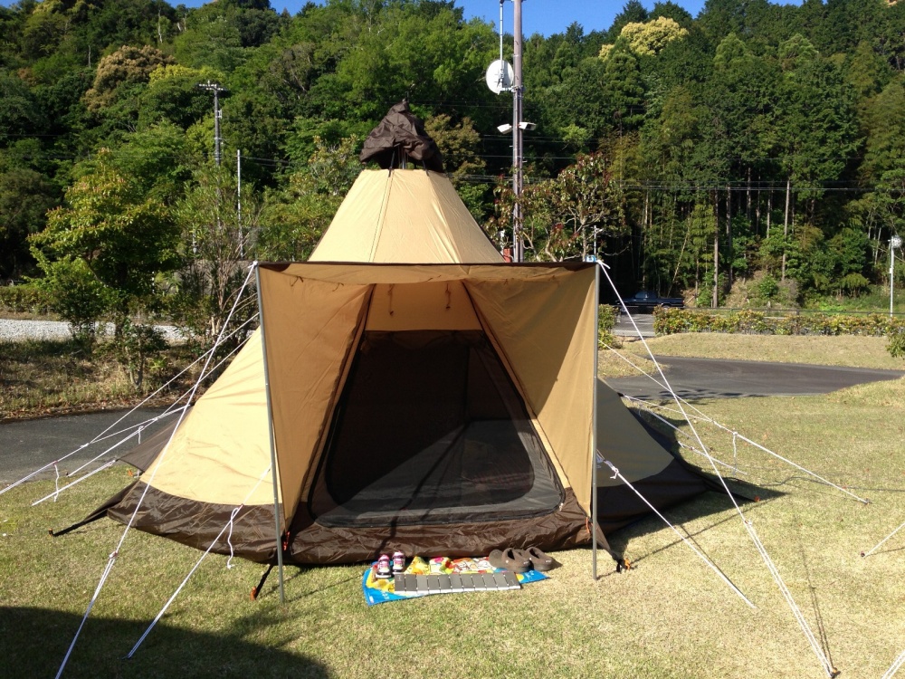 大きいけれど意外と簡単に立てられます。設営を手際良く進めるのに、まず入口の場所を決めるのが大事です。