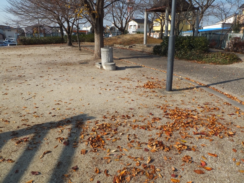 公園に着くと桜の木が紅葉していて、落ち葉がたくさん。