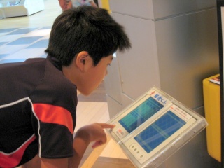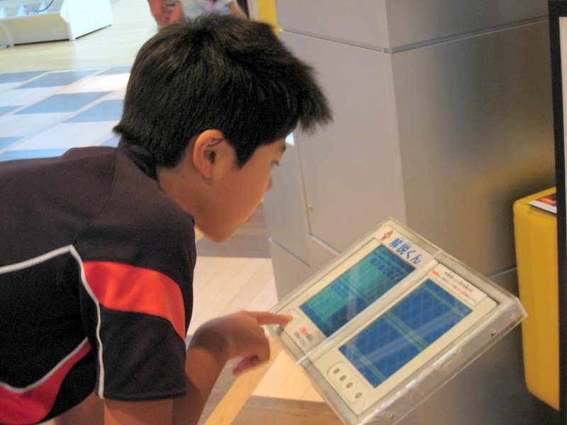 ところどころに「解説くん」というデジタル説明書が設置されていて、これを⾒れば、不思議な仕掛けの科学的な仕組みがわかるんですよ。