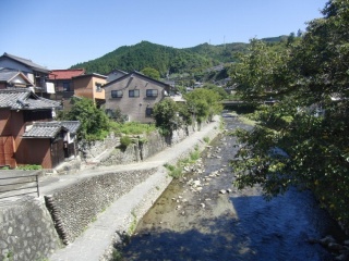 わが家から車で40分ほど。涼しげな山間の道路を走り抜け、川が間近に見えてきたら足助に到着です。