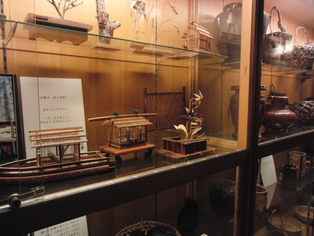 敷地内を色々まわり、こどもが見つけたのは展示された竹細工の舟など。