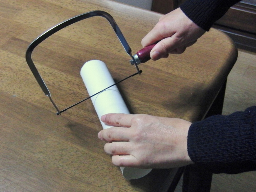 だいたいのものは、こどもの力で切ったり貼ったりできますが、アルミホイルや食品ラップの芯はかたいので、親が糸ノコなどで切ってあげるとよいです。