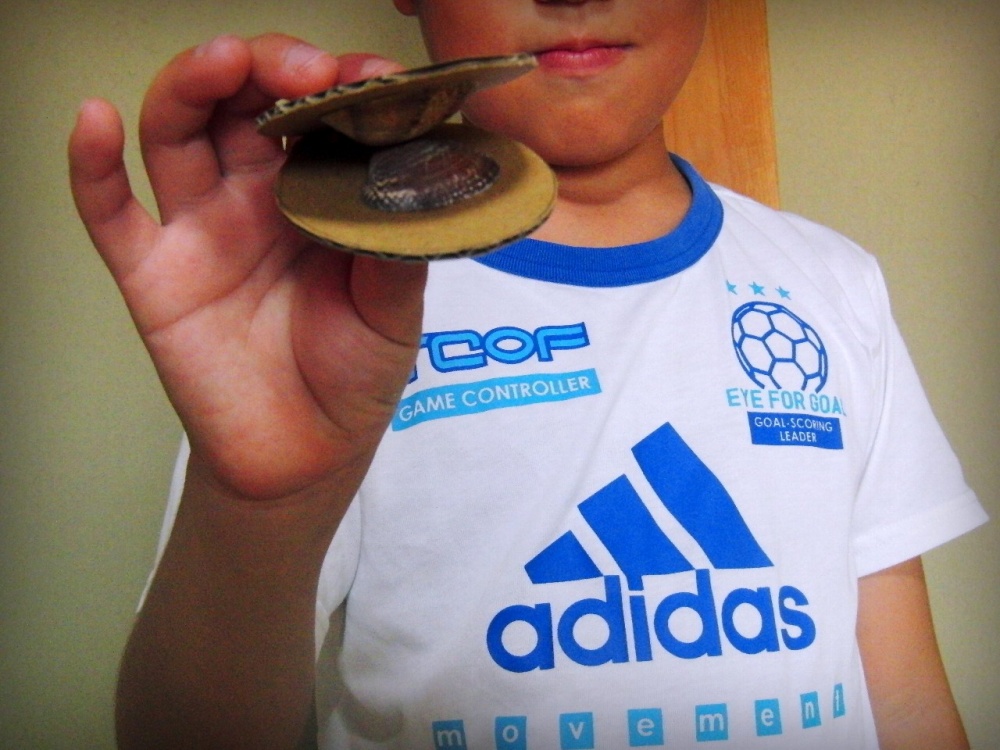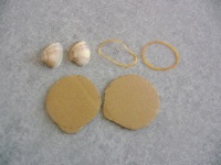 材料:厚紙、貝殻(アサリ等)、輪ゴム2本