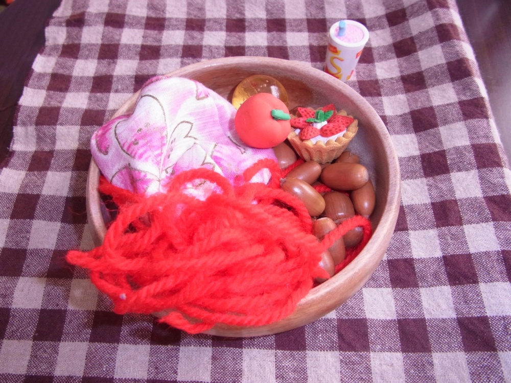 例えば、毛糸、お手玉、どんぐり、スーパーボール。見立て方は、こどもの想像力におまかせ。