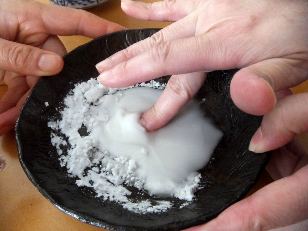 ※力を加えると「ぎゅっ」と硬くなり、ゆるめると「とろーり」となる不思議な現象です。