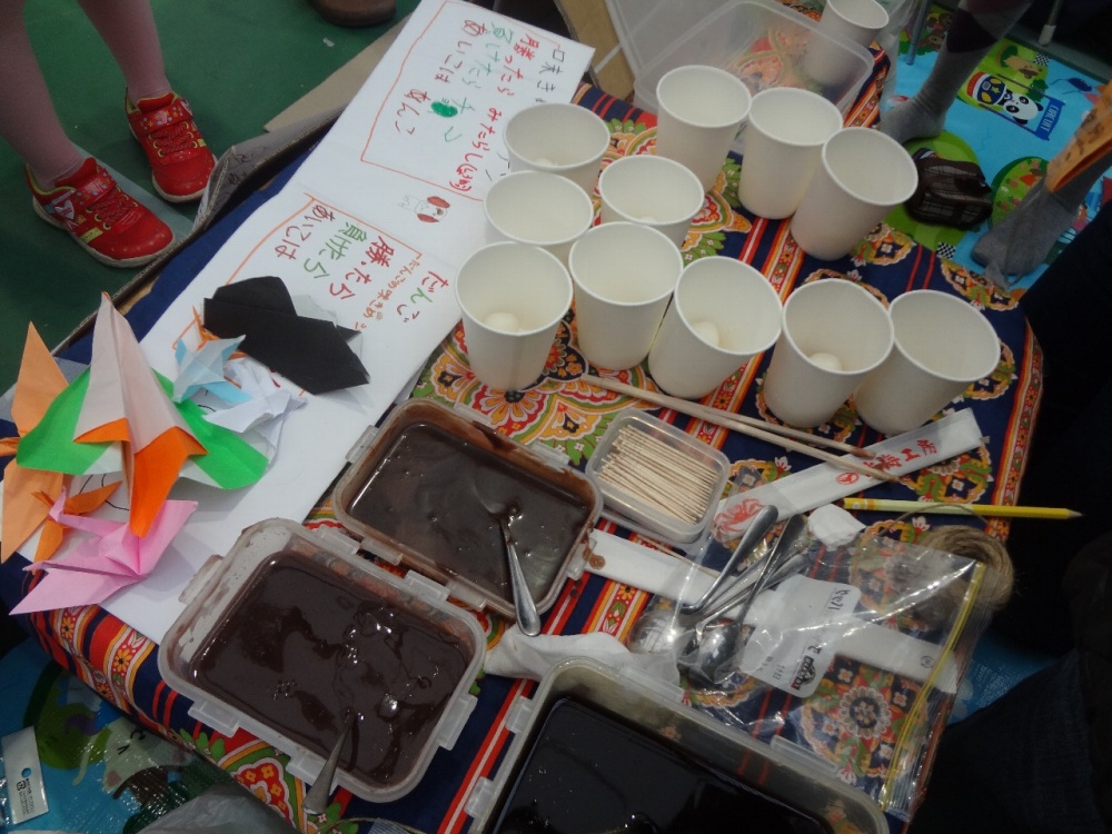 前回のおやこまつりは屋内の広い公共施設を借りて、サークル単位でお店を開きました。