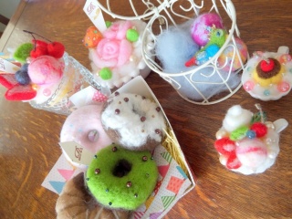 羊毛フェルトでスイーツや植物など、形あるものはほとんど再現することができます。