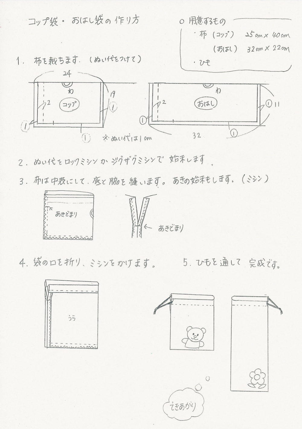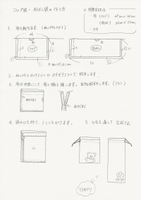 これはわたしが手芸教室で使う「おはし袋の作り方」の紙です。