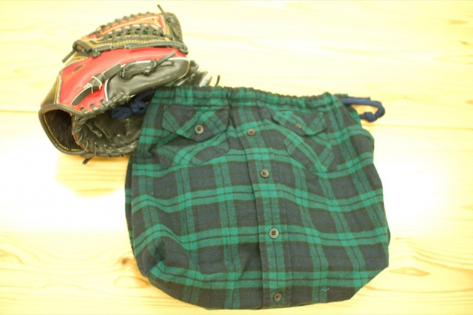 バッグにボタンが付いていることから、元がYシャツだったことが分かりますね。