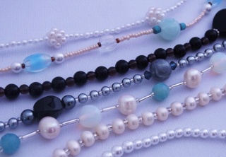- 道具やパーツがあればネックレスも ネックレスも、ブレスレットと同じようにビーズを通していくだけでできますよ。 同じようにテグ...